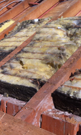 Hier sieht man deutlich ein Wespennest in der Dachdämmung.